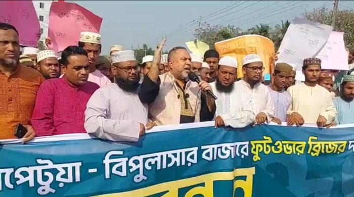 খিলা বাজারে ফুটওভার ব্রিজের দাবিতে মানববন্ধন, নিরাপদ পারাপারের দাবি
