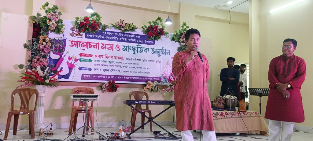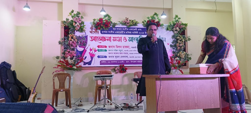 শুক্রবার (১৯ সেপ্টেম্বর ২০২৫) উপজেলা অডিটোরিয়ামে অনুষ্ঠিত এই অনুষ্ঠানে সভাপতিত্ব করেন সুর সাধনা সঙ্গীত একাডেমীর সভাপতি সুমন দেবনাথ।