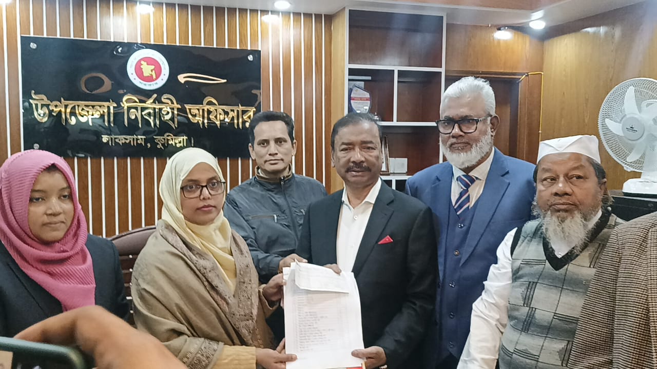 জি.এম.এস রুবেল, লাকসাম (কুমিল্লা): কুমিল্লা ৯ আসনে বিএনপি মনোনীত ধানের শীষ প্রতীকের প্রার্থী মোঃ আবুল কালাম মনোনয়নপত্র জমা দিয়েছেন। সোমবার (২৯ ডিসেম্বর) দুপুর ১২টায় লাকসাম উপজেলা নির্বাহী অফিসারের কার্যালয়ে তিনি আনুষ্ঠানিকভাবে মনোনয়নপত্র দাখিল করেন।