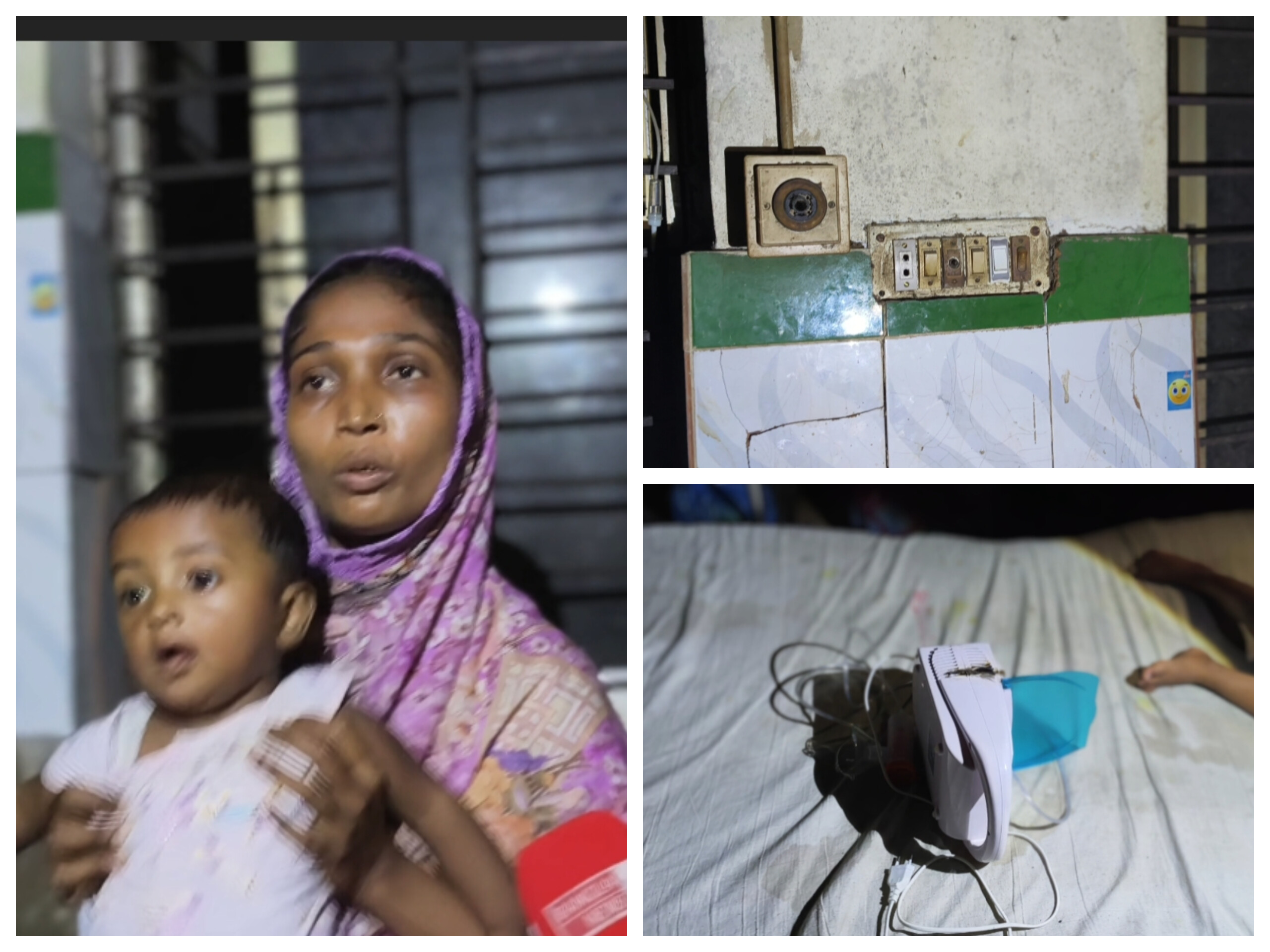 বুধবার সন্ধ্যায় এ ঘটনা ঘটে। ভুক্তভোগী পরিবারের সদস্য ও প্রত্যক্ষদর্শীরা জানান, শ্বাসকষ্টজনিত সমস্যায় আক্রান্ত ৮ মাস বয়সী শিশু তাসিন ইসলামকে নেবুলাইজার মেশিনে শ্বাসপ্রশ্বাস দেওয়ার প্রস্তুতি নিচ্ছিলেন তার মা কাজল রেখা। এ সময় বৈদ্যুতিক সংযোগ দেওয়ার সঙ্গে সঙ্গেই হঠাৎ নেবুলাইজার মেশিনে আগুন ধরে যায়।